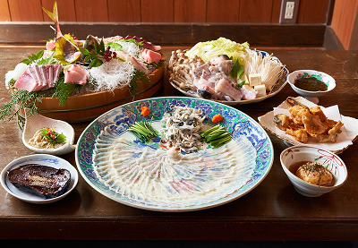 宿では、とらふぐや獲れたての地魚をふんだんに使った料理の数々をお楽しみいただけます。そして、この鷹島の新鮮な海の幸をご家庭でも味わっていただけるよう、オンラインショップでは厳選した旬の海産物をお取り寄せ商品としてご用意しております。