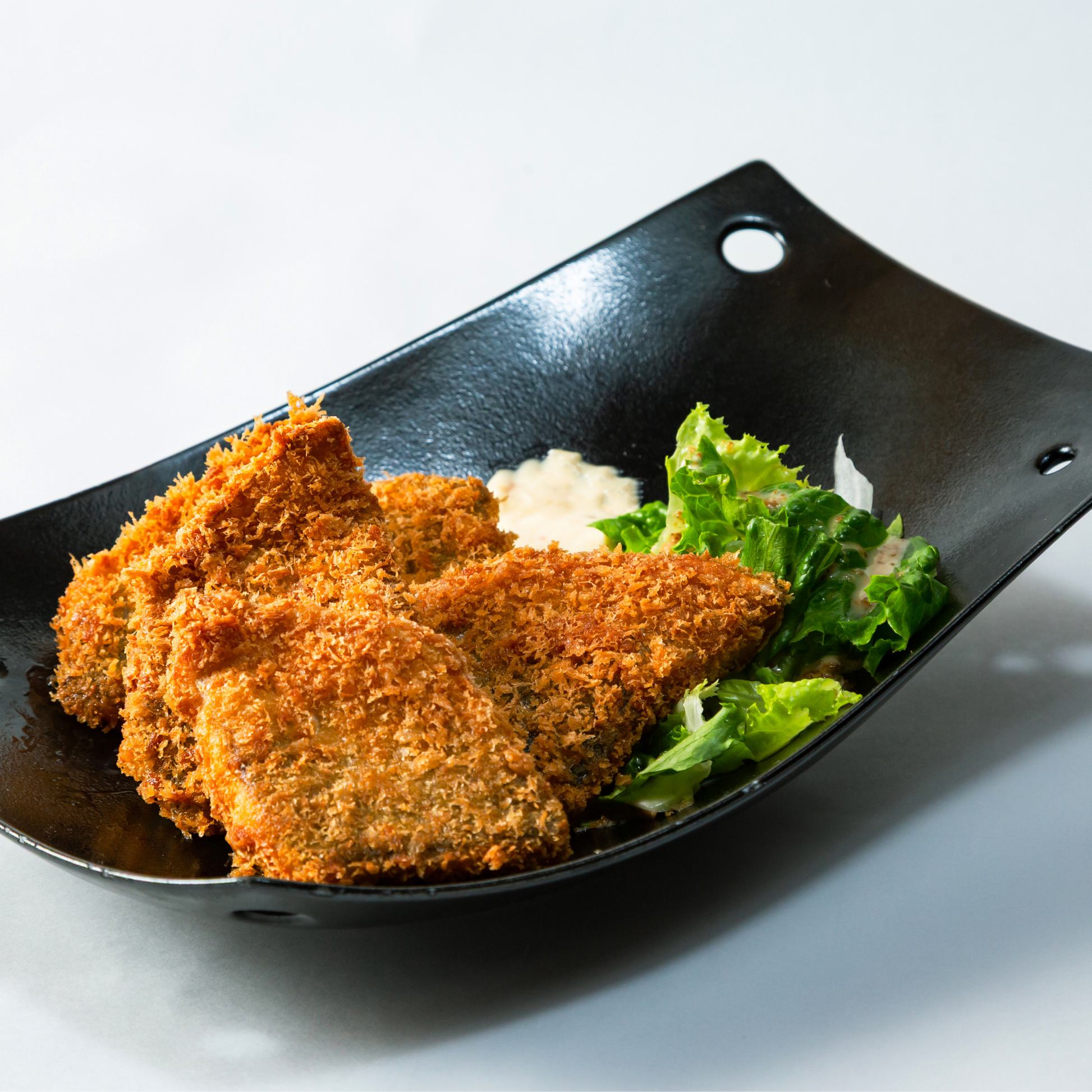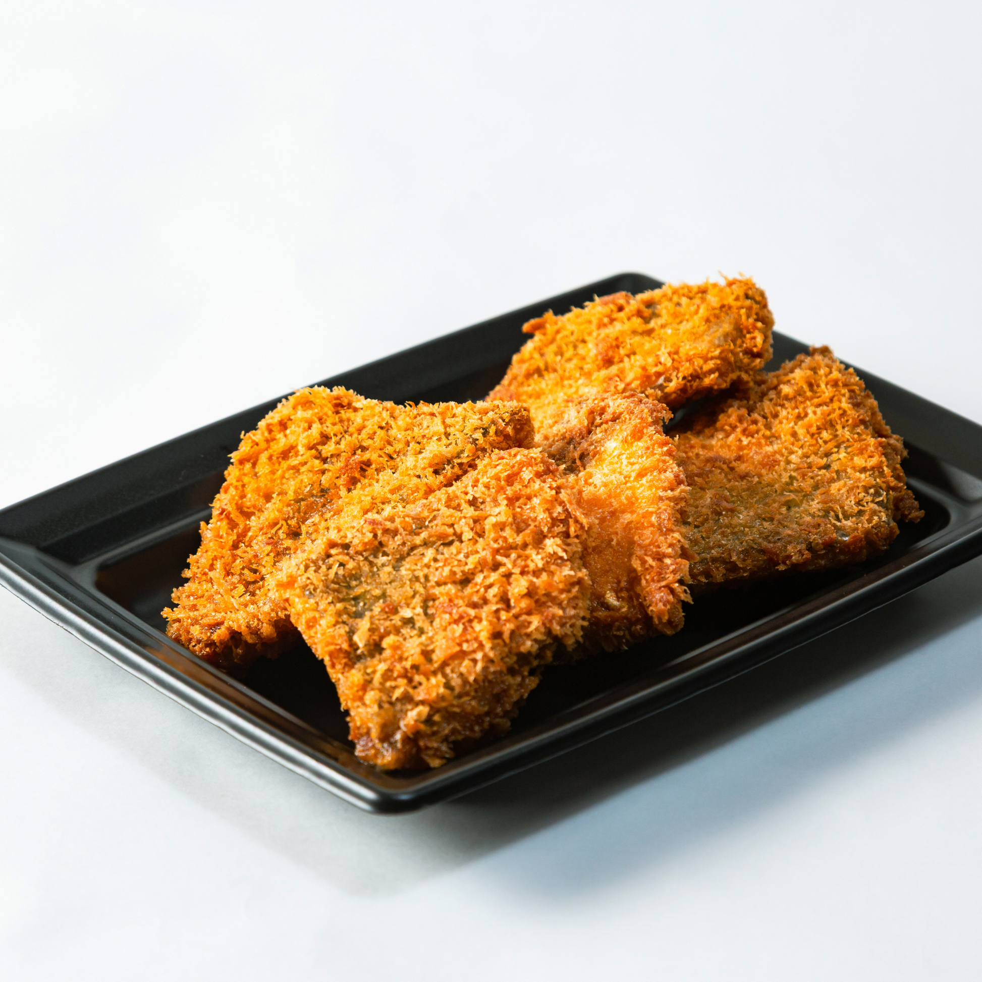 玄界灘でその日に獲れた肉厚の真アジをカラッと揚げて、旨みを閉じ込めたまま急速冷凍。レンジで温めるだけで、衣はサクサク、ふっくりした身の食感が楽しめます。 アジフライ220g